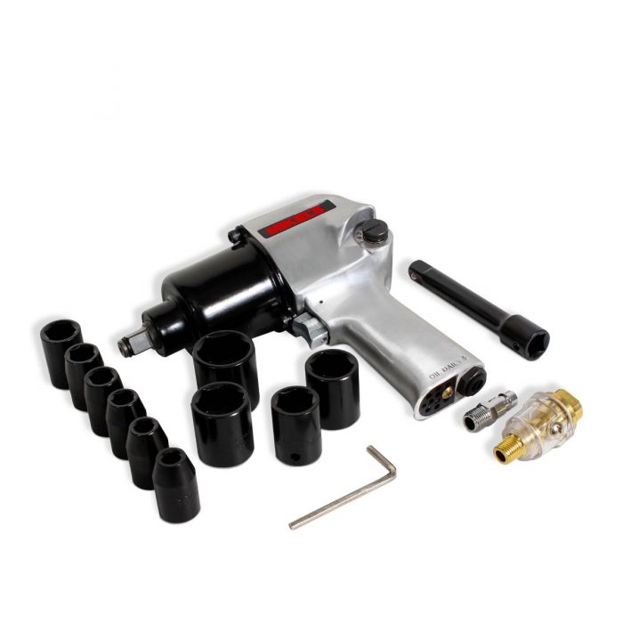 Pistola de impacto neumática (1/2”, 529 lb/ft) con kit de 10 dados